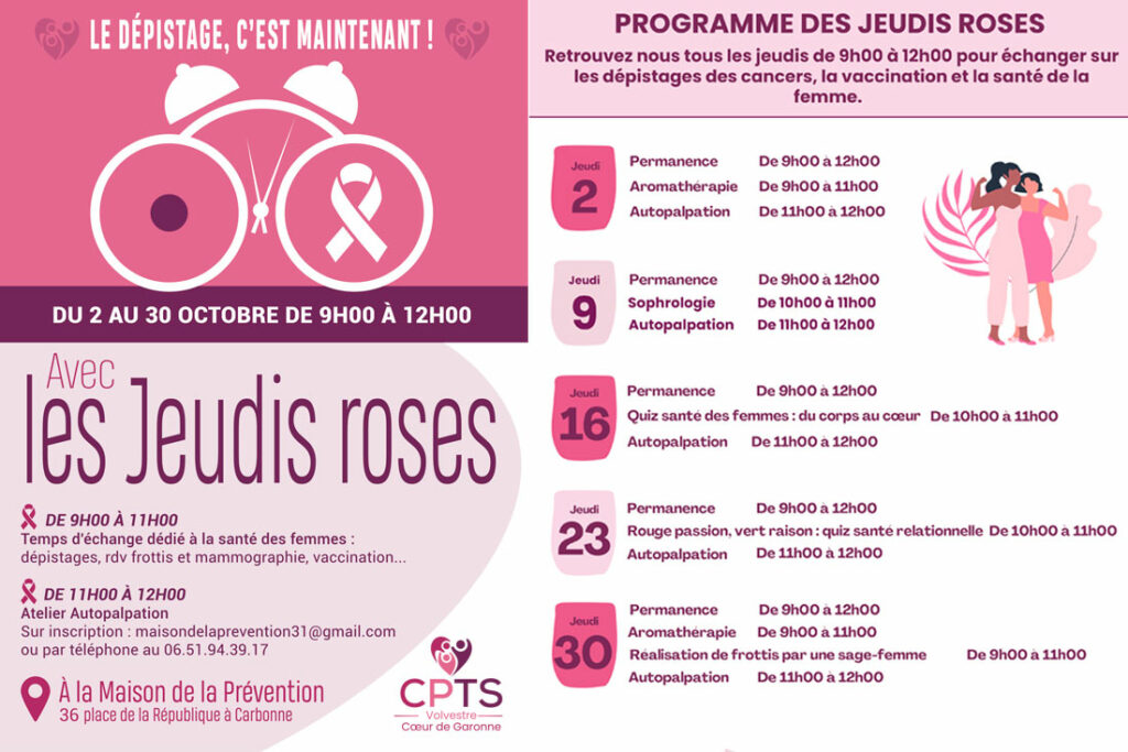 La CPTS organise des campagnes visuelles et évènements de dépistage lors d’Octobre rose et sensibilise les femmes sur l’importance de se faire dépister par la mammographie, grâce à des ateliers ludiques sur le dépistage tout au long de l’année, complémentaires à l’autopalpation.